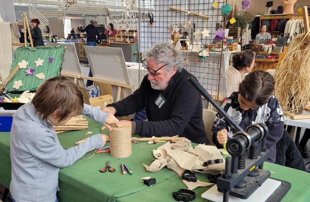 A l’arrière boutique atelier mobile en laine avec lequel chaque enfant pourra repartir